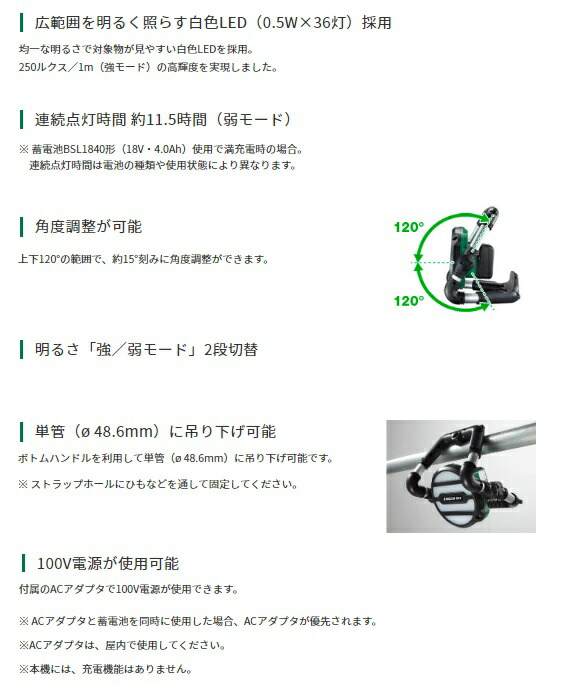 HiKOKI コードレスワークライト UB18DGL(S)(NN)+バッテリBSL36A18BX+充電器UC18YDL2付 14.4V/18V対応 日立 ハイコーキ オリジナルセット品