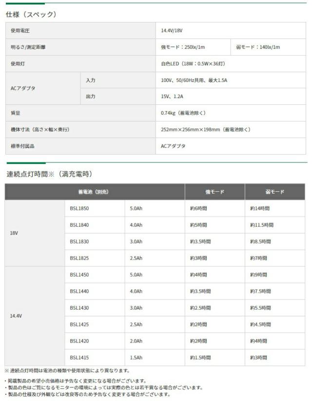 ※蓄電池BSL1840形(18V・4.0Ah)使用で満充電時の場合。