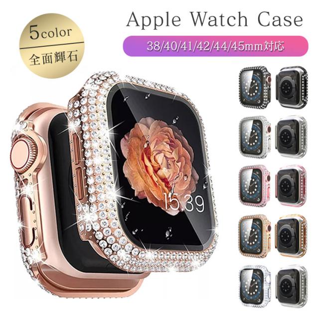【Tiffty】 アップルウォッチ カバー Apple Watch 10 8 7 6 5 4 46mm 45mm 41mm 40mm 42mm キラキラ スワロ 全面 レディース 金 ゴールド おしゃれ 44mm 一体型 ケース SE 第2世代 ガラスフィルム 全面保護 38mm ピンクゴールド 女性 シルバー 女の子 かわいい 送料無料
