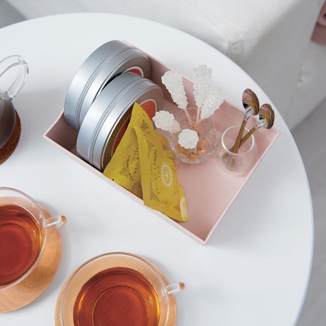 蓋のないオープンタイプなので収納しにくい不定形の雑貨やメガネ等のさっと取り出して使いたいものや、マニキュアやハンドクリームなどをおしゃれに収納できます。ガムシロップやフレッシュ、インスタントのコーヒーやティーバッグなどをまとめて入れて置くのもおすすめです。