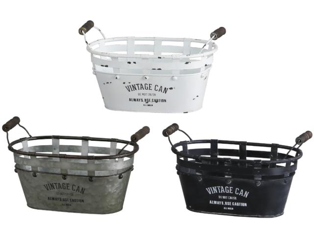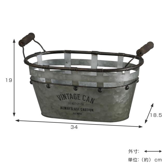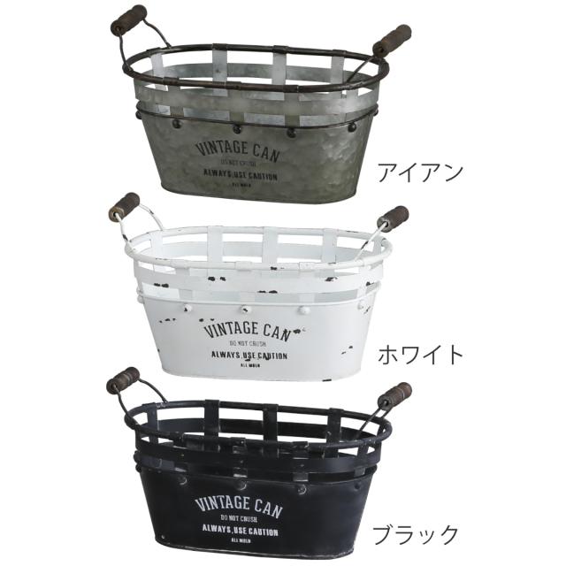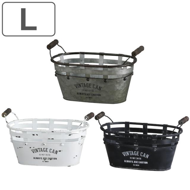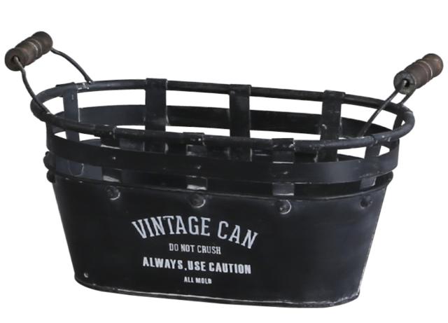 小物収納 鉢 アイアンポット ジャルダン オーバルカン L ヴィンテージ缶 インテリア ( 小物入れ ブリキ缶 缶 アイアン 収納 カン 積み重ね 持ち手付き アンティーク調 スタッキング ブリキ おしゃれ 雑貨 プランターカバー )