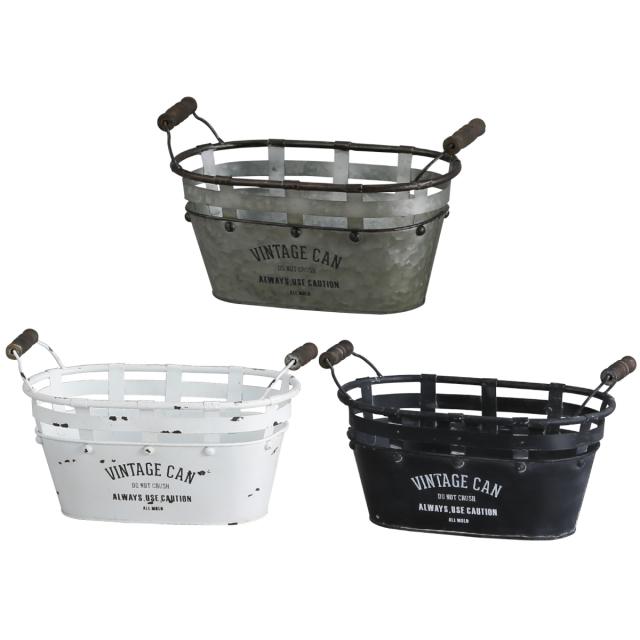 小物収納 鉢 アイアンポット ジャルダン オーバルカン L ヴィンテージ缶 インテリア ( 小物入れ ブリキ缶 缶 アイアン 収納 カン 積み重ね 持ち手付き アンティーク調 スタッキング ブリキ おしゃれ 雑貨 プランターカバー )