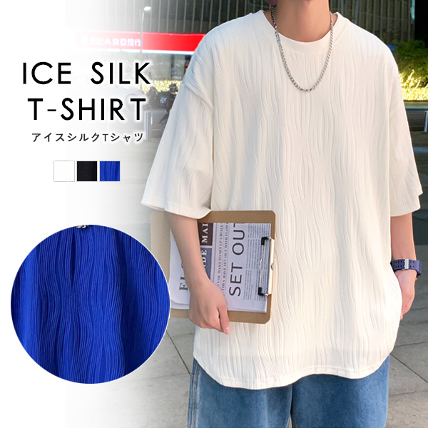 アイスシルク Tシャツ メンズ 半袖 オーバーサイズ 無地