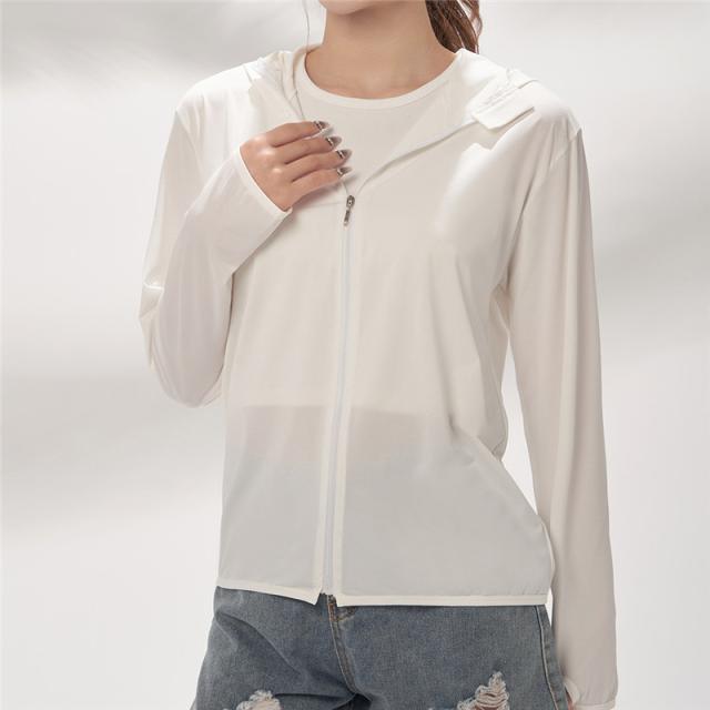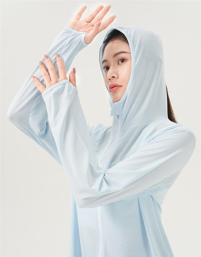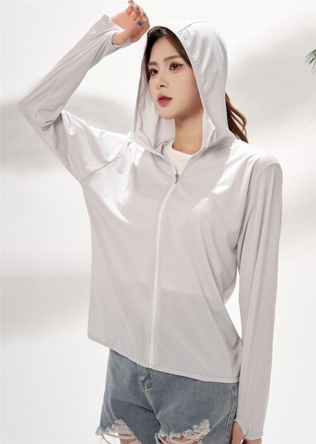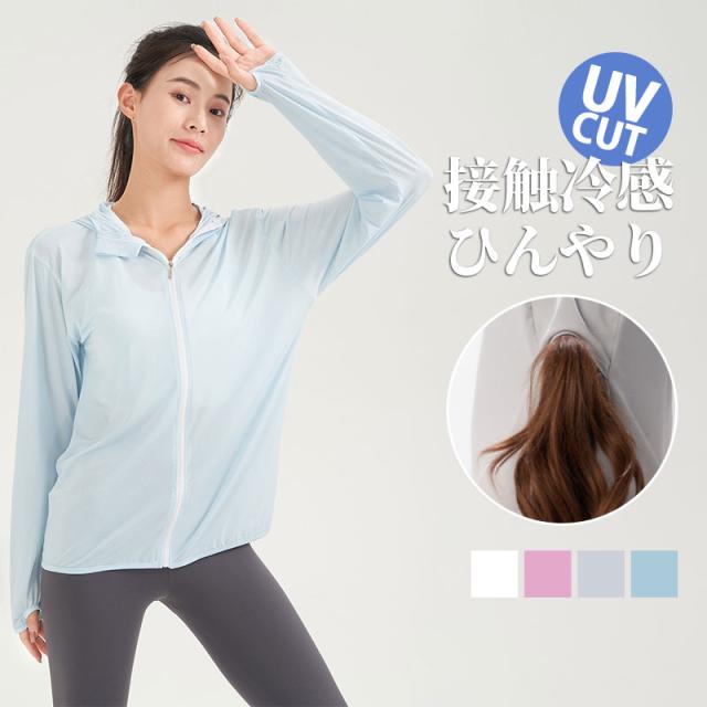 【水曜日まで!10%クーポン配布中】 ラッシュガード レディース アイスシルク UPF50+ フード付き 接触冷感 日焼け止め 紫外線対策 サマージャケット 体型カバー