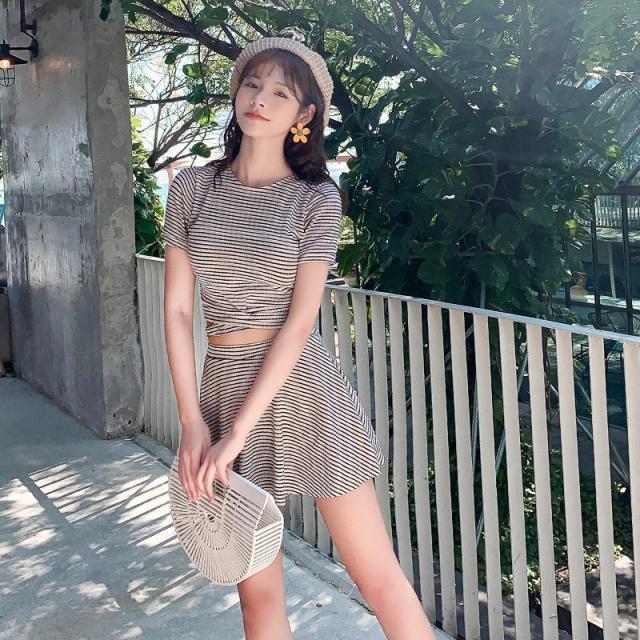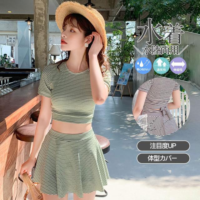 【水曜日まで!10%クーポン配布中】 水着 レディース ワンピース 2点セット ビキニ 韓国風 フリル 20代 30代 40代 ハイウエスト 女性用 水着セット 海 ビ