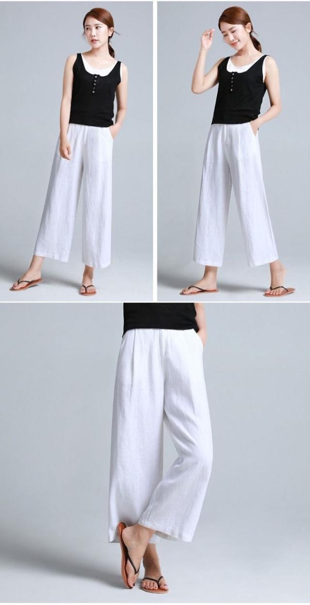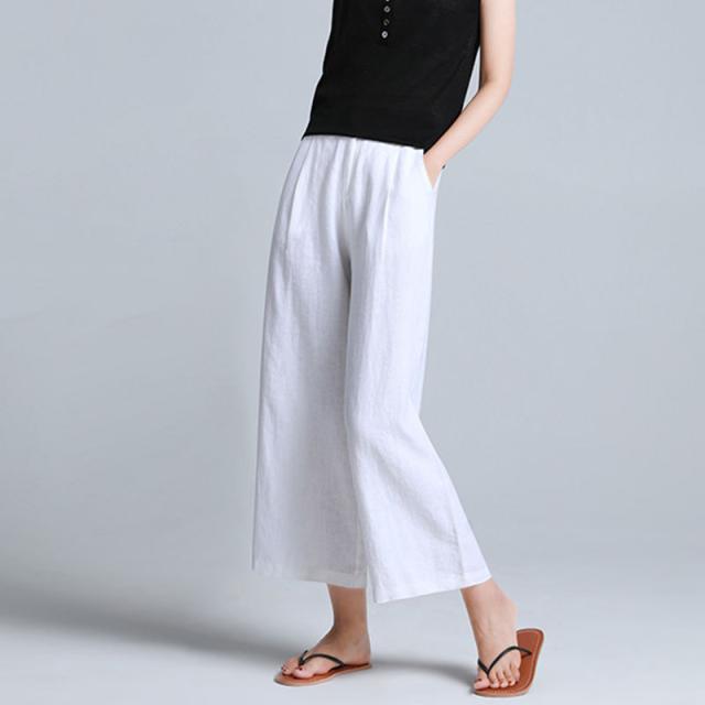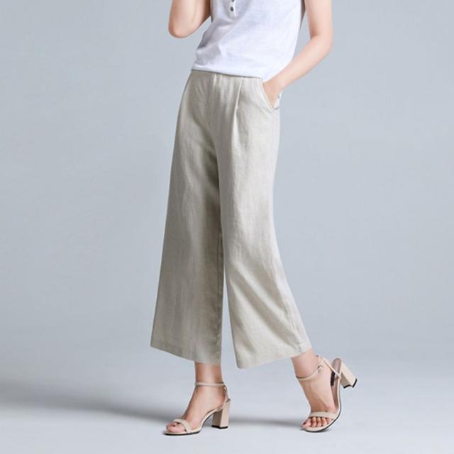 ワイドパンツ レディース ハイウエスト 綿麻 レディース きれいめ 春 9分丈 アンクルパンツ クロップドパンツ ガウチョパンツ カジュアル ボトムス ウエストゴム ハイウェスト S M L XL 2XL 3XL 送料無料