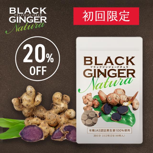 【初回20%OFF】ブラックジンジャーナチュラ BLACK GINGER Natura (250mg × 60粒) 有機JAS認証取得 ブラックジンジャー サプリ ポリメトキシフラボン含有 内臓脂肪 日本製