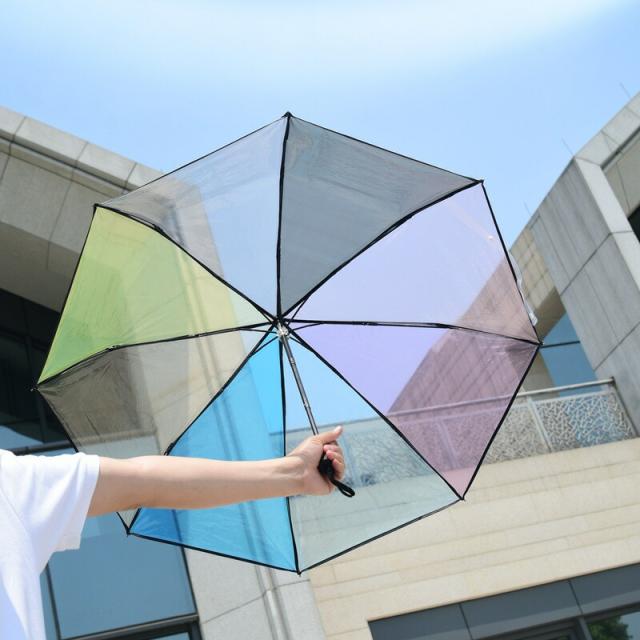 話題の 自動開閉 ワンタッチ 折り畳み傘 クリア 透明 レインボーカラー【F-352-02】透明傘 ビニール傘 軽量 晴雨兼用 日傘 雨傘 梅雨