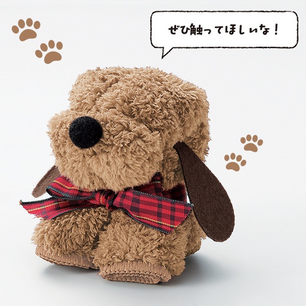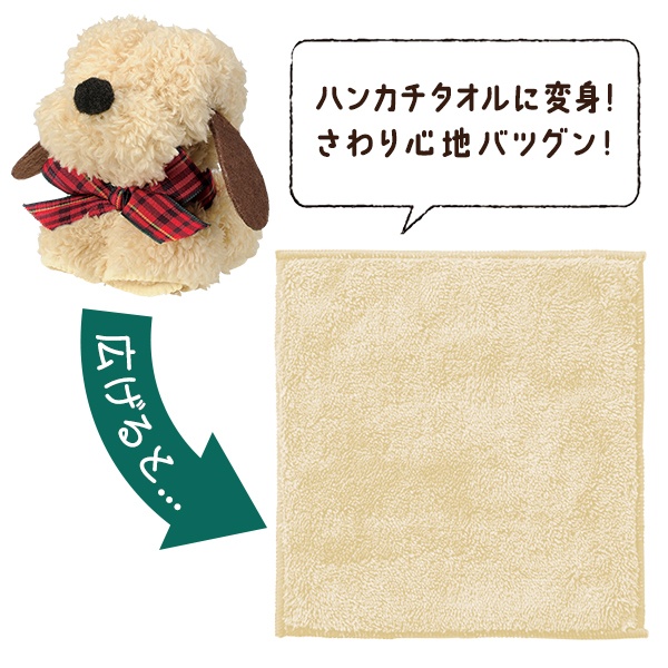 | ふわふわモコモコの可愛いワンちゃん♪ 広げるとハンカチに変身!触り心地抜群! | |