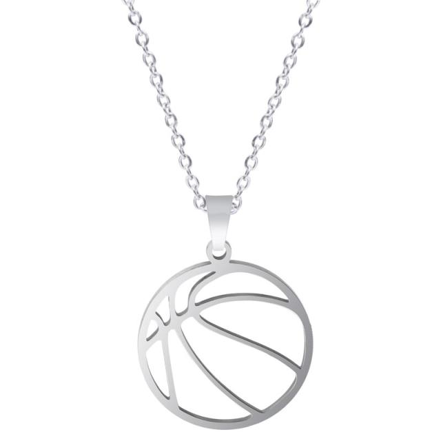 バスケットボールをデザインしたステンレスペンダントを2mmの太さのアズキチェーンに通したネックレス。