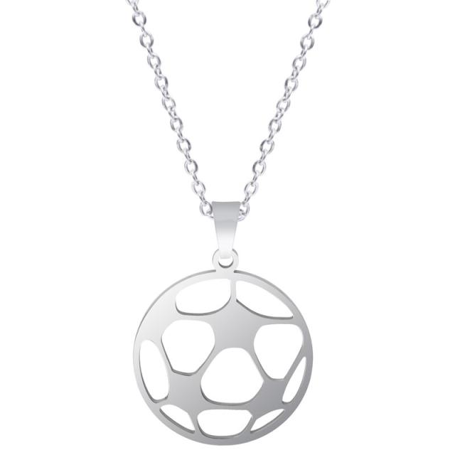 フットボールステンレスネックレス(50cmのステンレスチェーン付き) アズキネックレスチェーンつき ペンダントトップ サージカルステンレス316L メンズ レディース チョーカー スポーツ 男子 女子 ギフト 部活 クラブ サッカー ワールド 世界