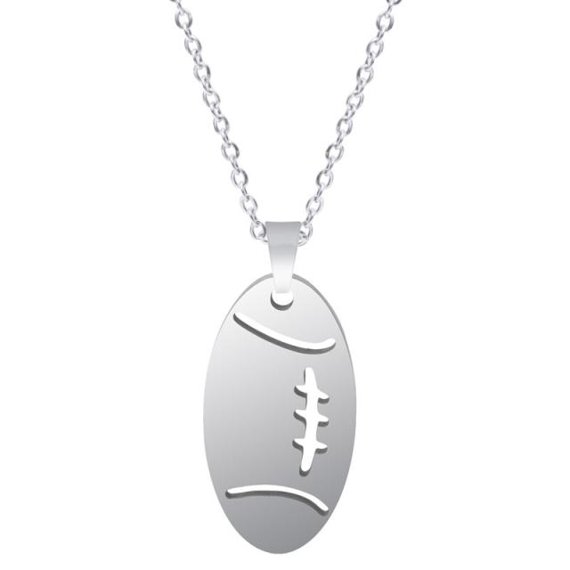 ラグビーボールステンレスネックレス(50cmのステンレスチェーン付き) アズキネックレスチェーンつき ペンダントトップ サージカルステンレス316L メンズ レディース チョーカー スポーツ 男子 女子 ギフト 部活 クラブ アメリカンフットボール アメフト ラガーマン