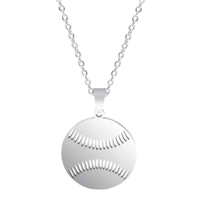 ベースボールステンレスネックレス(50cmのステンレスチェーン付き) アズキネックレスチェーンつき ペンダントトップ サージカルステンレス316L メンズ レディース チョーカー スポーツ 男子 女子 ギフト 部活 クラブ 野球 草野球チーム 白球