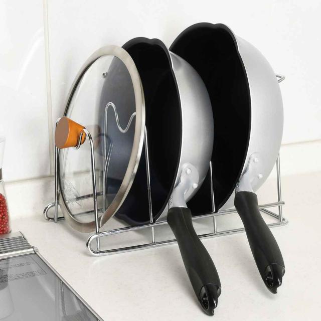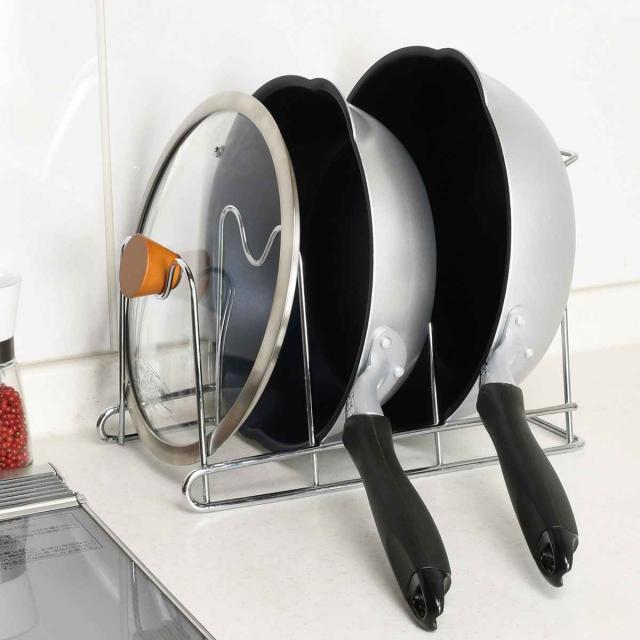 ●太くて丈夫な鉄のワイヤーなので、重さのあるフライパンでも安心して収納することができます。