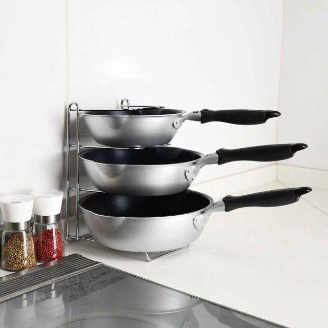 フライパンラック ストレージセレクト 3段 ( フライパンスタンド フライパン収納 フライパン立て 収納スタンド キッチン 収納 フライパン 立て ラック 台所用品 フライパン用ラック 縦置き 横置き )