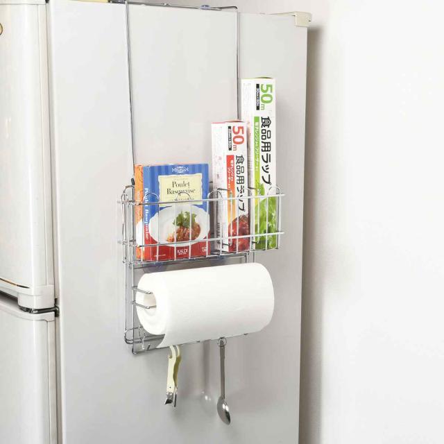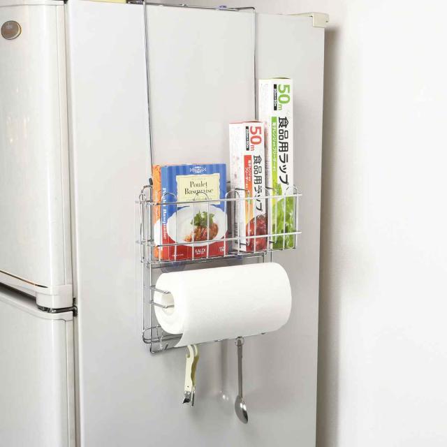 ●キッチンでよく使うキッチンペーパーやラップ類を冷蔵庫のサイドにすっきりまとめて収納できます。