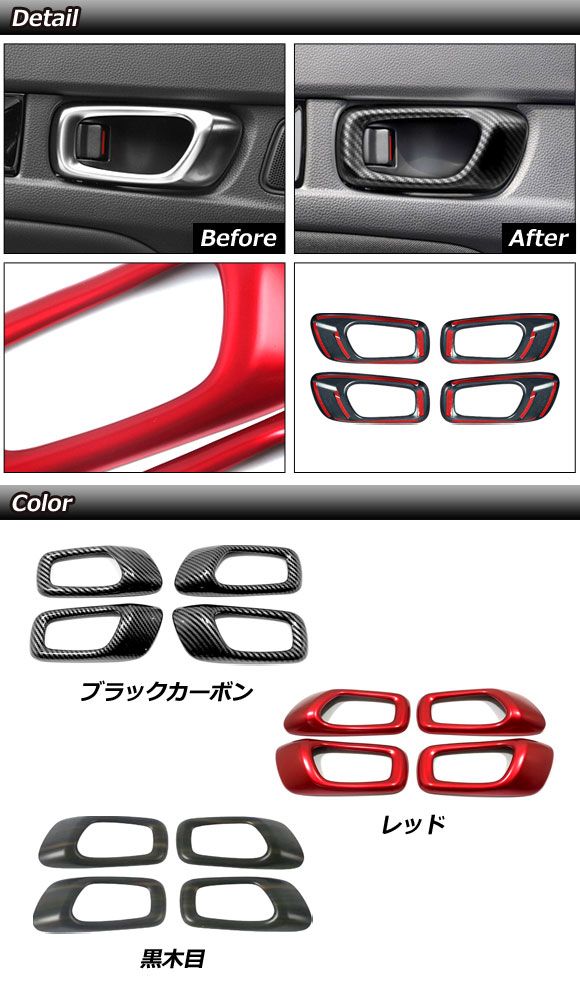 インナードアハンドルフレーム ホンダ シビック FL系 タイプR可 2021年09月〜 レッド ABS製 入数:1セット(4個) AP-IT2965-RD