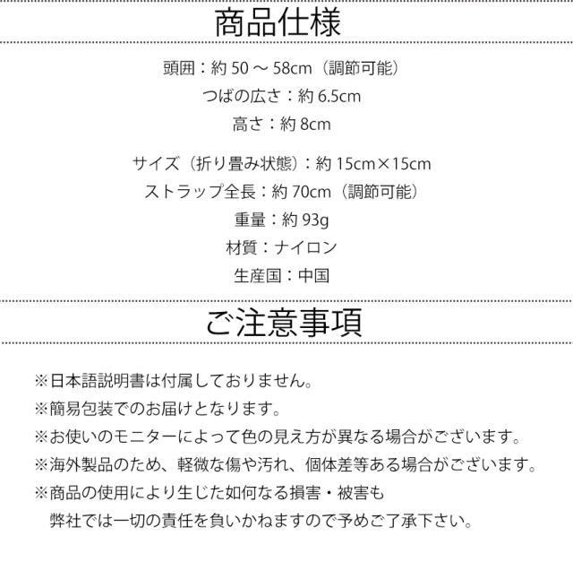 頭囲:約50〜58cm(調節可能)