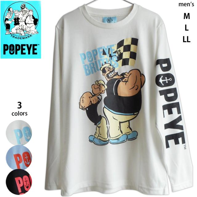送料無料 長袖Tシャツ ロンT ポパイ メンズ カットソー ポパイザセーラーマン ブルータス オリーブ マリン 錨 アメコミ レトロ アメリカ 海軍 古着風 チェッカーフラッグ マッチョマン ペアルック ビンテージ風 大人 レトロ アニメ 白 黒 水色