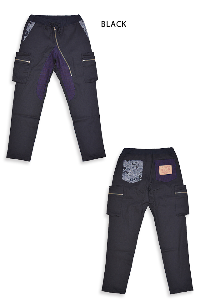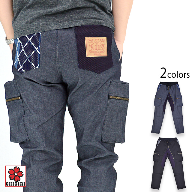 ストレッチデニム斜めジップパンツ CHIGIRI CHS54-130P ちぎり チギリ 和柄 和風 日本製 国産 変形