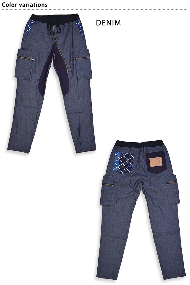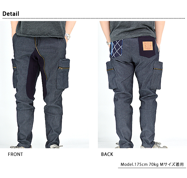 CHIGIRIさんから「ストレッチデニム斜めジップパンツ(CHS54-130P)」のご紹介です。 スタイリッシュなシルエットが魅力的なデニムパンツが入荷してまいりました。 ボディーには10ozクラスストレッチデニムを採用。 内もも部分、バック右ポケットにはインディゴ刺子生地を合わせ、バック左ポケットなどに和柄生地を配しました。 フロントの斜めジップの切替しや、サイドの立体ポケットが特徴です。 ウエストはリブになっており、穿き心地も抜群。 ウエストはゴムとひもで調節可能。 全てmade in JAPANの国内生産です。 | ||||||||||||||||||||