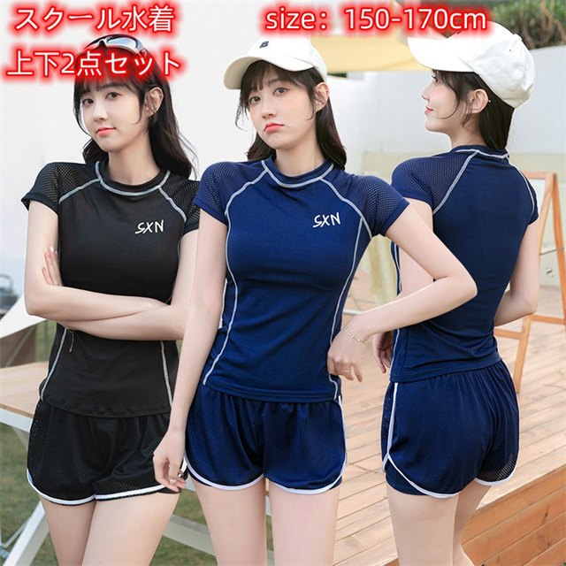 レディース 女の子 セパレート 2点セット 高校生 中学生 半袖 長袖 スクール水着 ジュニア水着 150 160 水泳授業 スポーツウエア