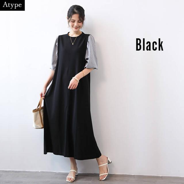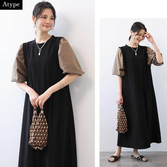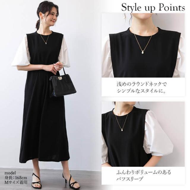 ■取扱商品の特徴 ワンピース ワンピース レディース カジュアル ロングワンピース ロング丈 同窓会 二次会 食事会 膝下丈 膝下 フェミニン 異素材 ドッキングワンピース パフスリーブ トレンド感 10代 20代 30代 春 きれいめ ロング 体型カバー ゆったり 大きいサイズ ラウンドネック バックスリット 黒 茶色 紺色 白 ブラック ブラウン ネイビー ホワイト M L 9号 11号 rt3420