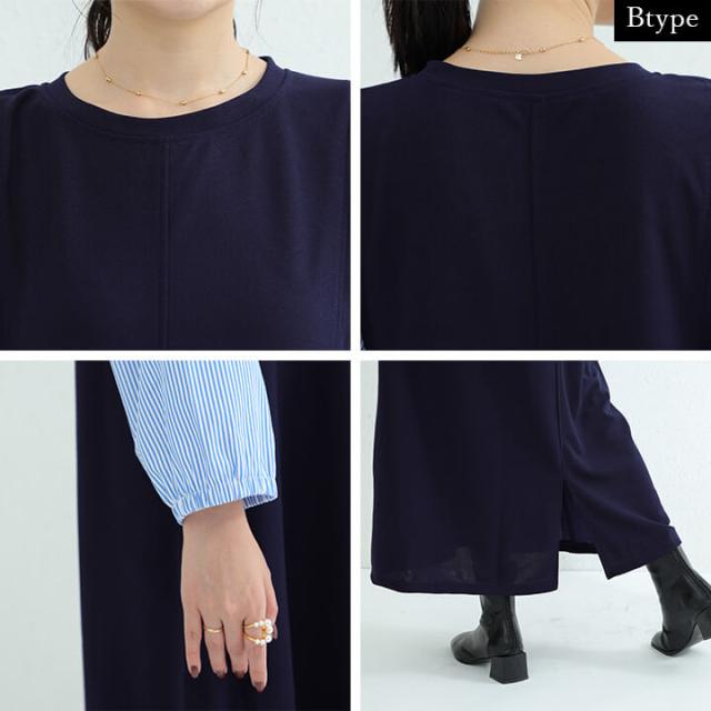 カジュアルにもフェミニンにも仕上がるドッキングワンピース。