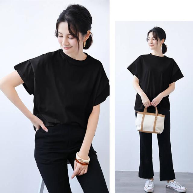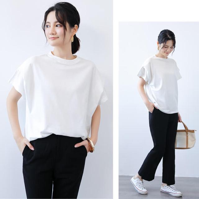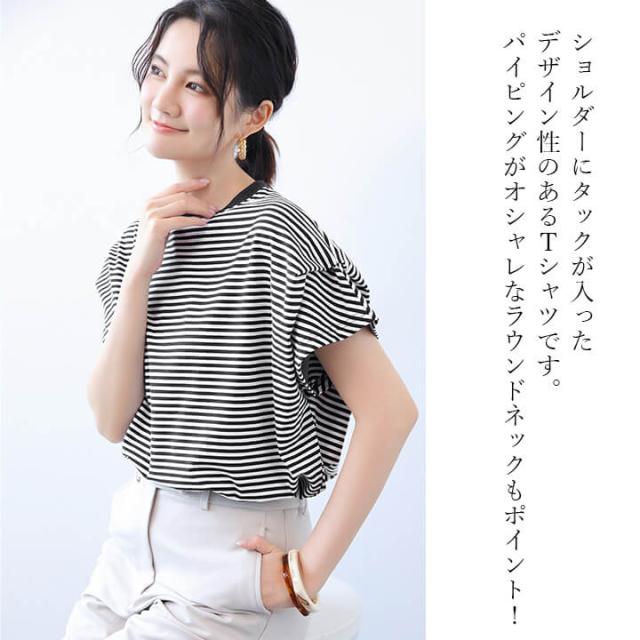 ショルダーにタックが入ったデザインがおしゃれなゆったりTシャツ。