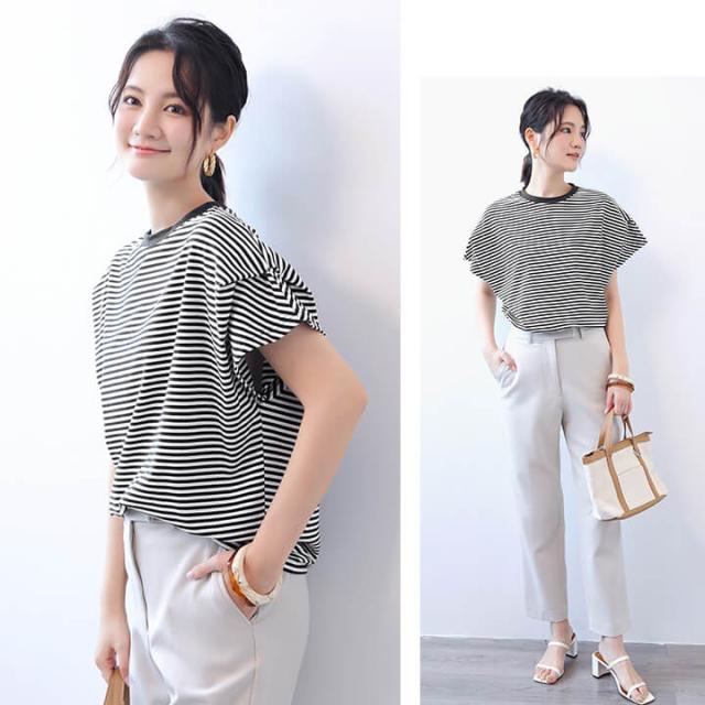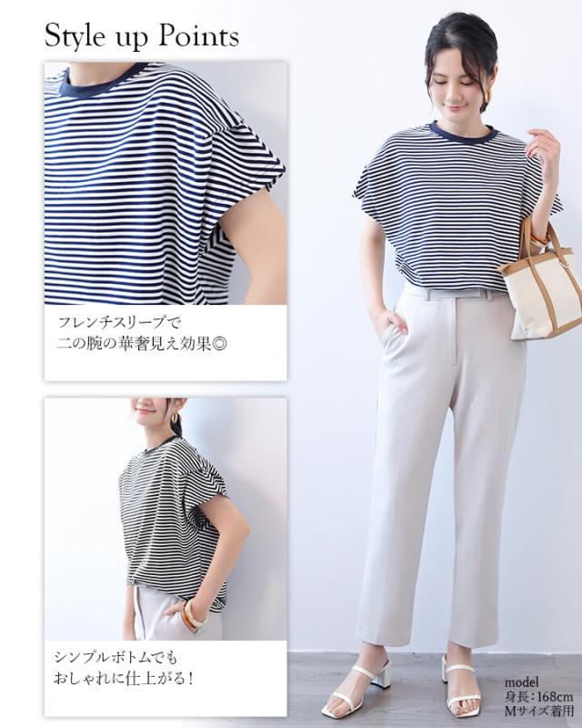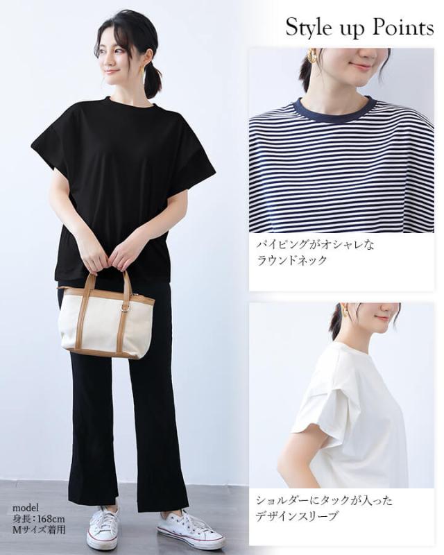 ■取扱商品の特徴 TシャツTシャツ トップス レディース 半袖 フレンチスリーブ ボーダー ゆったり フリーサイズ ラウンドネック クルーネック Uネック 女性 カジュアル オフィス ゆったり 大きめ シンプル 夏 春 タック シャツ 大人 袖あり オフィスカジュアル きれいめ かわいい ベーシック ボートネック 体型カバー ミディアム丈 こなれ感 ベージュ ブラック ネイビー ホワイト 黒 紺 白 F 10代 20代 30代 40代 50代 rt3414
