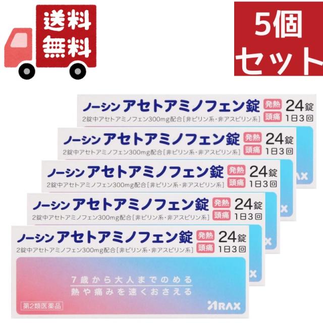 送料無料 5個セット 【第2類医薬品】【アラクス】 ノーシンアセトアミノ 24錠 アセトアミノフェン 発熱 頭痛