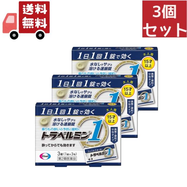 送料無料 3個セット 【第2類医薬品】《エーザイ》 トラベルミン1 大人用(15歳以上) 3錠 (乗り物酔い止め薬)