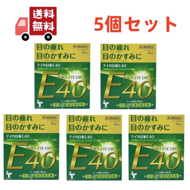 送料無料 5個セット【第3類医薬品】 大昭製薬 テイカ目薬E40 15ml ビタミンE配合 目薬 疲れ目 目の疲れ 目のかすみ 天然型 ビタミンE ジフェンヒドラミン塩酸塩配合 目の調節機能 新陳代謝 【代引不可】