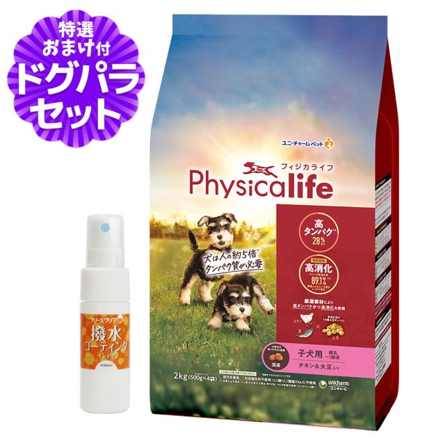 【パッケージ変更済】フィジカライフ (Physicalife) 子犬用 チキン&大豆入り 2kg+撥水コーティングインドア(水回り用) 20ml