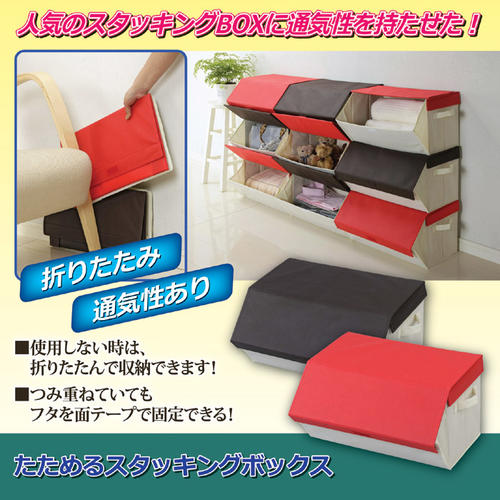 たためるスタッキングボックス h964(レッド/ブラウン)