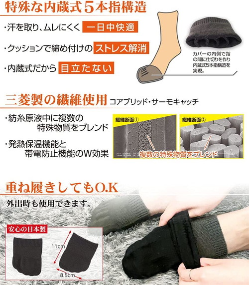 内蔵式5本指足先カバー h1116(145930)フリーサイズ男女兼用