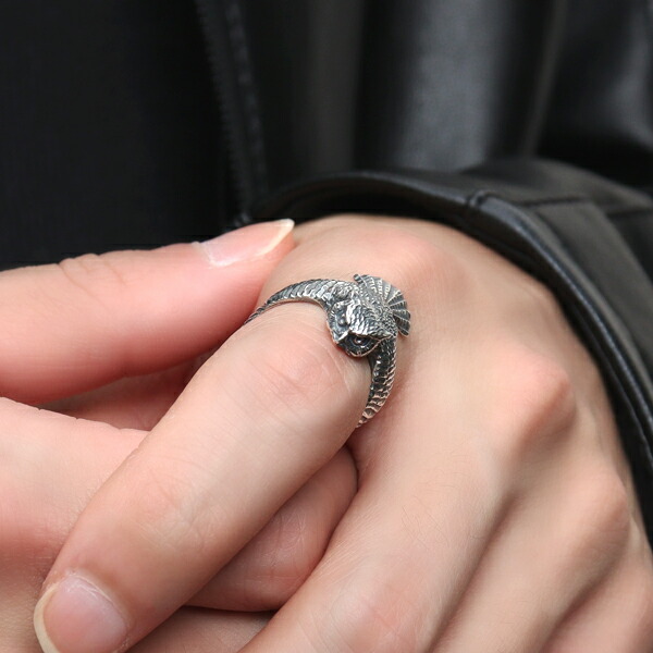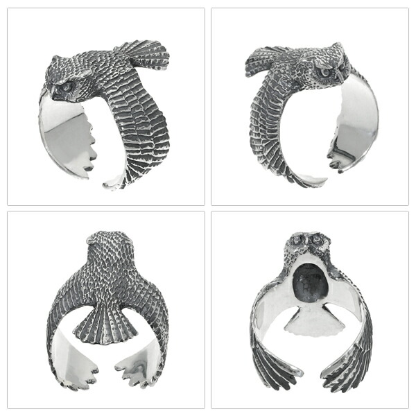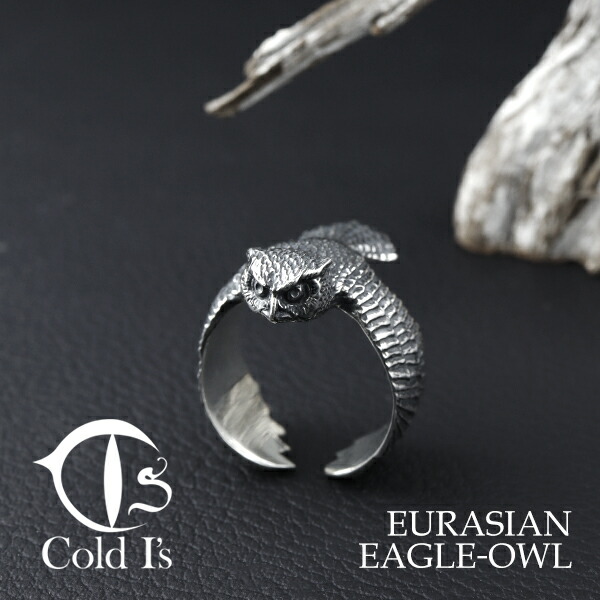 Cold I's ワシミミズク 巻きつき リング 14〜28号 シルバー925 指輪 シルバーアクセサリー ミミズク フクロウ 鷲木菟 鳥類 リアル メンズ レディース