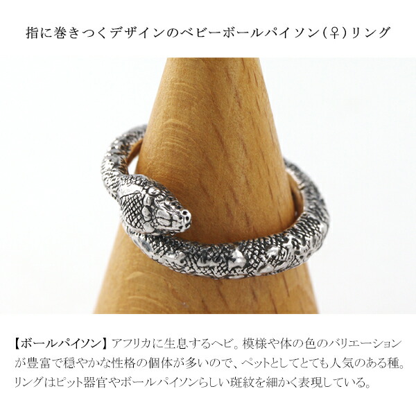 Cold I's ボールパイソン ベビー ♀ 巻きつき リング 1〜25号 シルバー925 指輪 ピンキーリング シルバーアクセサリー ニシキヘビ ヘビ 蛇 スネーク