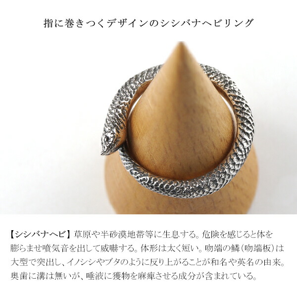Cold I's シシバナヘビ 巻きつき リング S 1〜23号 シルバー925 指輪 シルバーアクセサリー マイマイヘビ ヘビ 蛇 スネーク パイソン ボア 爬虫類