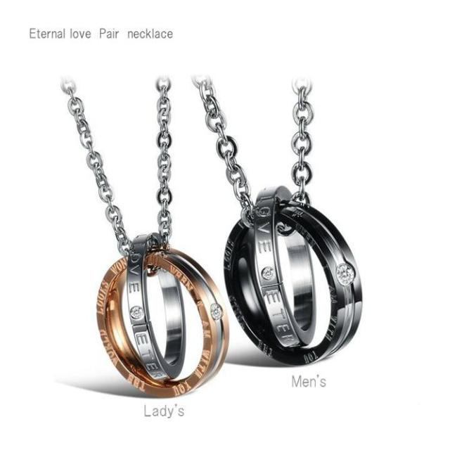 ネックレス 2リング ペンダント ピンクゴールド ローズゴールド ブラック メンズ レディース ユニセックス ステンレス 合金