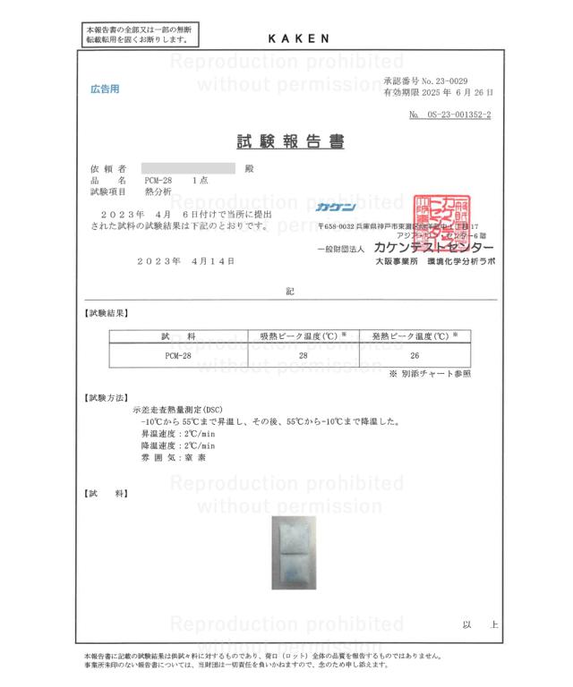 PCM冷却剤に強い衝撃を与えたり、傷をつけたら破ったりしないようにご注意ください。