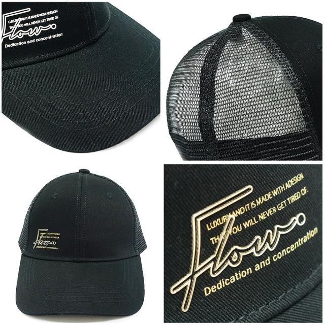 A/FLOW ロゴ キャップ 帽子 おしゃれ ゴルフ スポーツ ツバ長め メンズ レディース ブラック ホワイト ゴールド 黒 白 金 立体プリント 文字