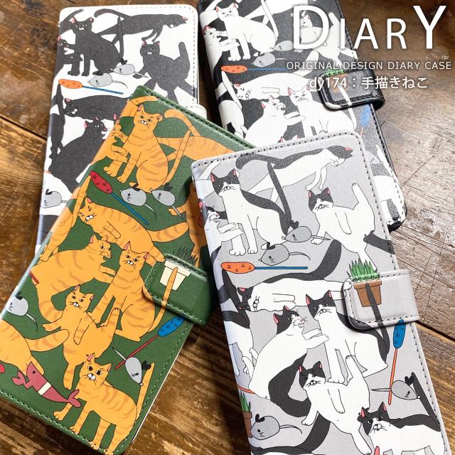 スマホケース 全機種対応 iPhone 17 ケース 手帳型 iPhone16e Pixel9a アイフォン17 ピクセル9a galaxy s25 a25 カバー デザイン 手描きねこ 手書き風 どうぶつ ねこ 猫 白猫 茶トラ ハチワレ 黒猫 ストラップホルダ