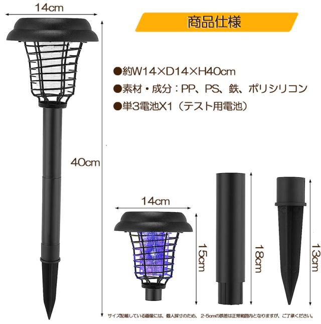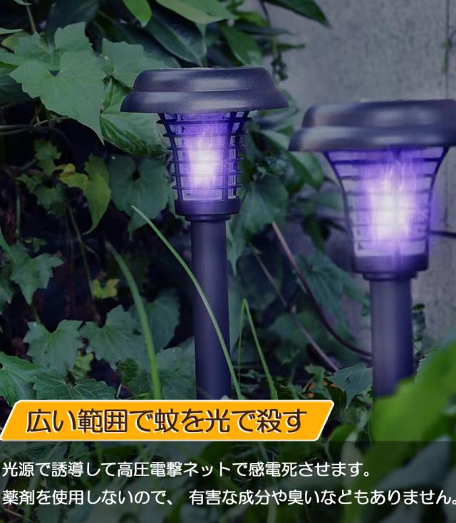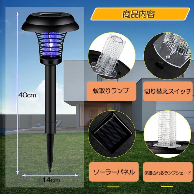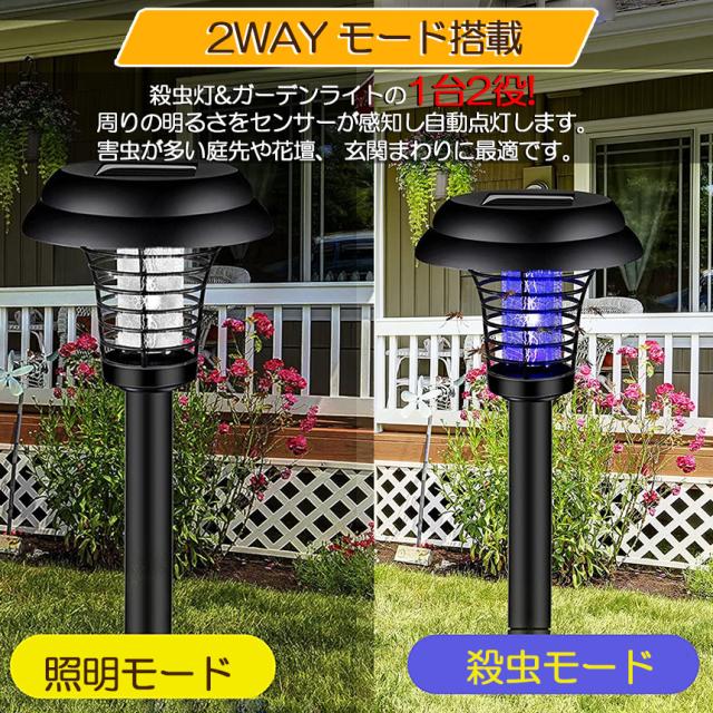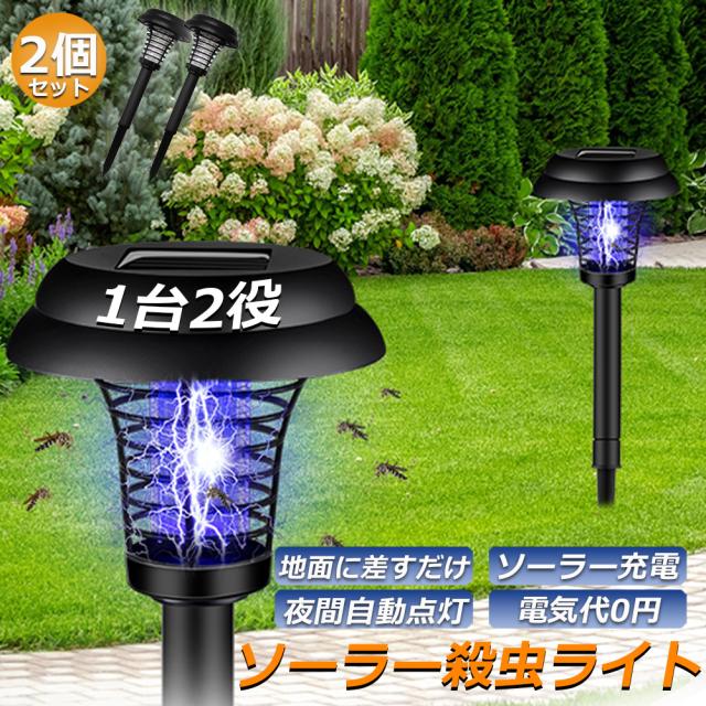 電撃殺虫器 ガーデンライト ソーラーライト 2点セット 電撃 殺虫ライト 埋め込み 自動点灯捕虫器 照明ランプ 強力蚊除け 害虫退治 高圧電撃 太陽光で充電 電気代なし 安全 エコ 整理便利 操作簡単 静音 屋外照明 庭 庭園灯 ガーデン