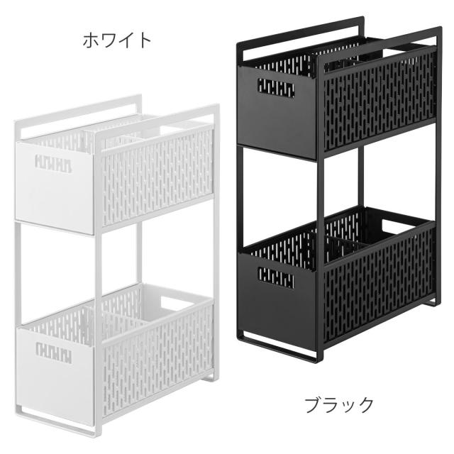 山崎実業 tower シンク下収納バスケット タワー 2段 ( 4903208052184 シンク下 収納 スライド バスケット 仕切り付き 収納バスケット スライド式 キッチン ラック 収納ラック 入れ ホワイト ブラック 白 )