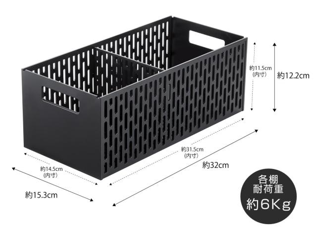 | サイズ | 約 幅16×奥行32.5×高さ46(cm) バスケット1つあたり:約幅15.3×奥行32×高さ12.2(cm) |