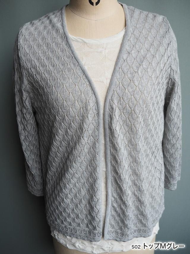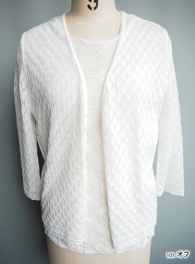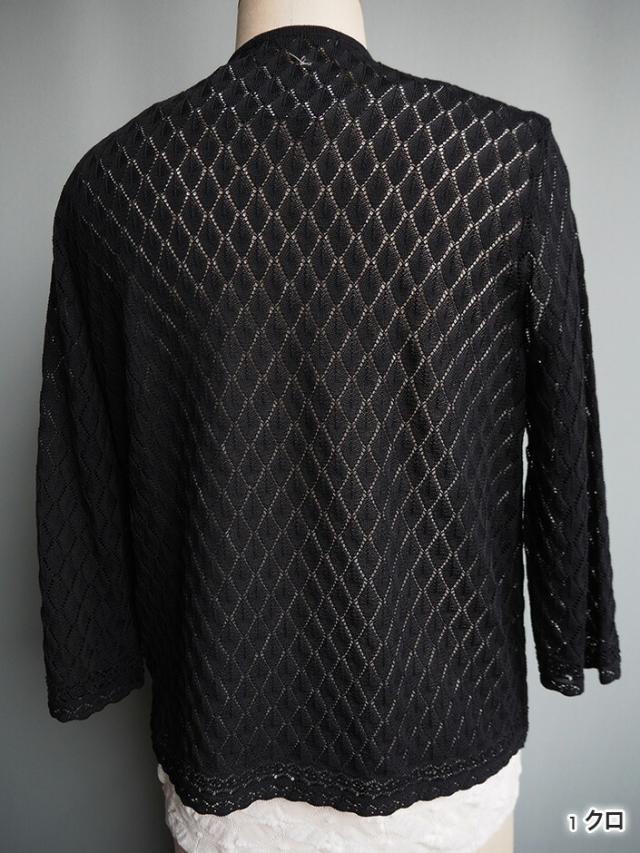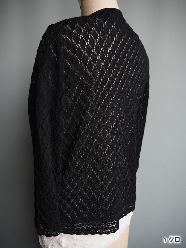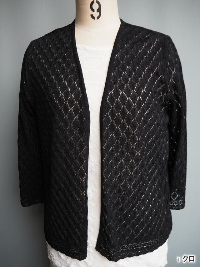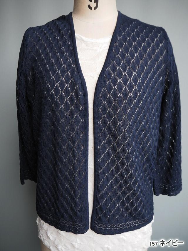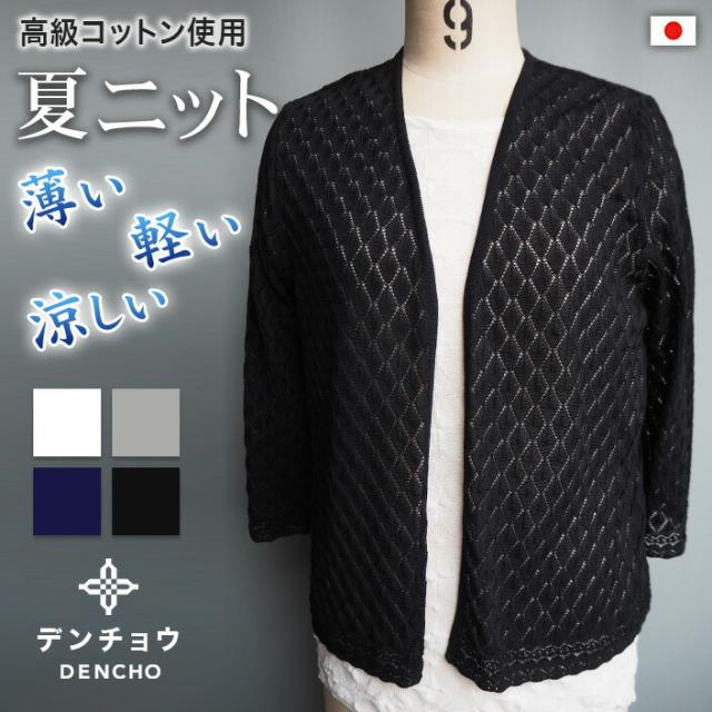 デンチョウ 扇 透かし柄 ボレロ 7分袖ト七分袖 トッパー カーディガン 夏 夏用 レディース ダイヤ柄 かわいい 可愛い 楽ちん 涼しい 洗える レイヤード ニット カーディガン トップス ケープ 羽織り レース柄 薄手 日本製 綿 プレゼント ギフト