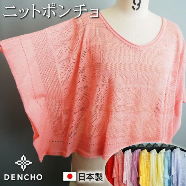 デンチョウ ポンチョ ニット マント ベスト ボレロ トップス ケープ 羽織り レース柄 ストール 夏 レディース 透かし柄 かわいい 可愛い 涼しい 洗える レイヤード 薄手 レース 日本製 国産 綿 コットン 麻 レーヨン 着やすい プレゼント ギフト