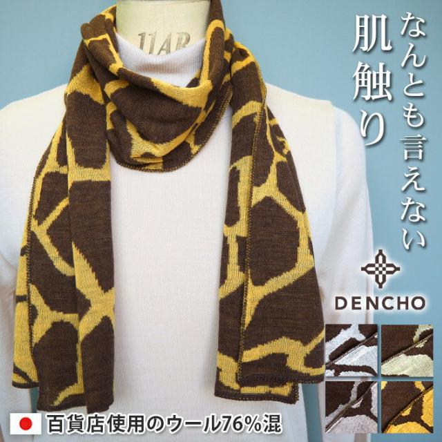 デンチョウ プレゼント プレゼント マフラー オーガニック ウール きりん 麒麟 キリン 柄 レディース メンズ ストール スヌード 日本製 柄物 アトピー ウール アレルギー 冬 おしゃれ お洒落 かわいい 可愛い 薄手 おすすめ 暖かい 防寒 ギフト 肌に優しい 敏感肌 洗える
