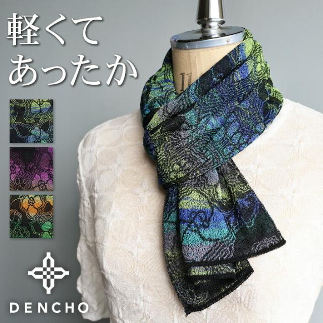デンチョウ マフラー パウダーカスリ 花柄ストール マフラー レディース メンズ 薄手 薄い ストール ネックウォーマー スカーフ 肌に優しい 肌荒れ あたたか 暖かい おしゃれ 絹 冬 日本製 洗える クリスマス プレッゼント 小さめ